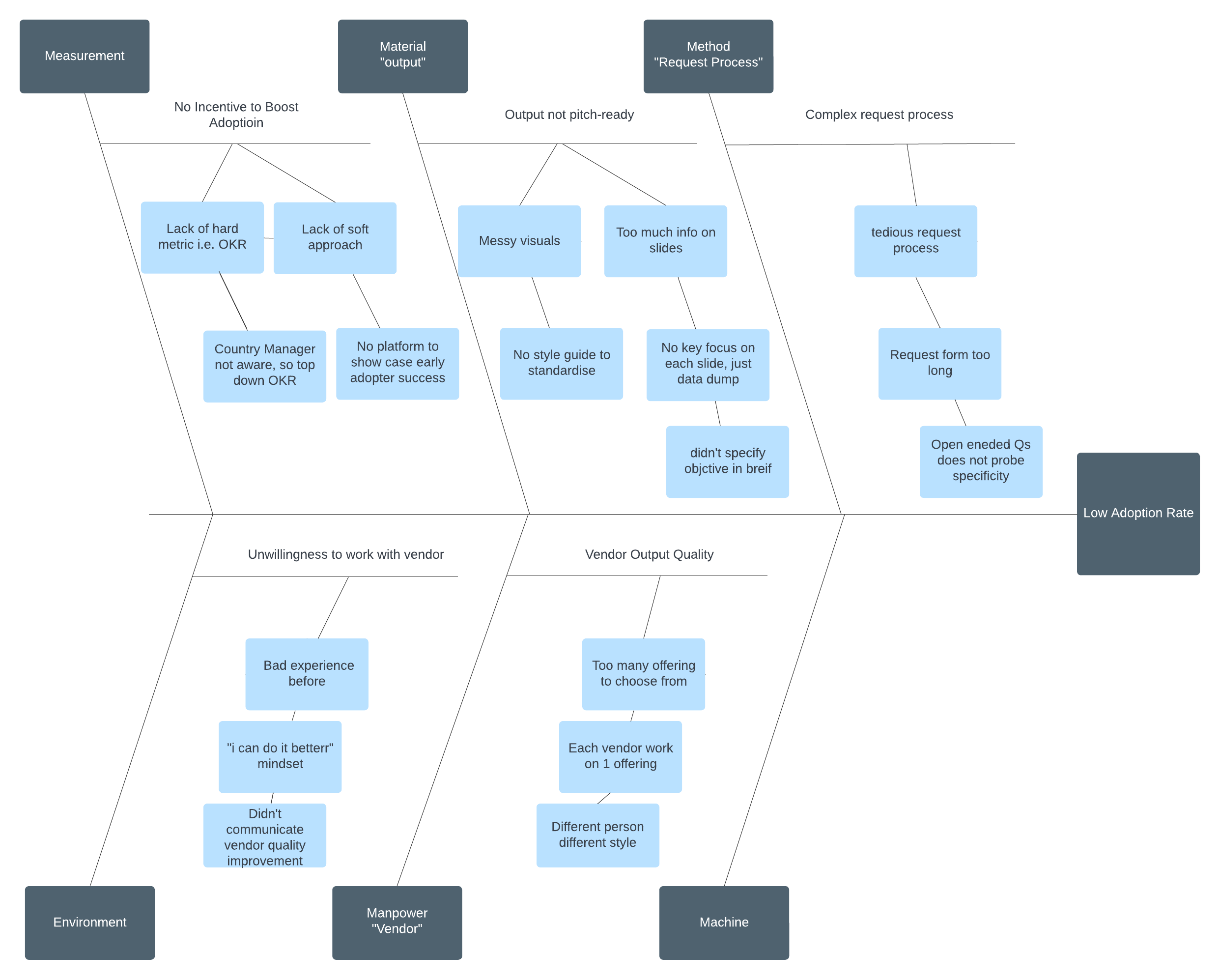 “Involve the people involved” - interviewed low adopters to understand why they’re not using solution. One of the feedback was that the solution’s language was too internal focused, lacking customer-centricity.
